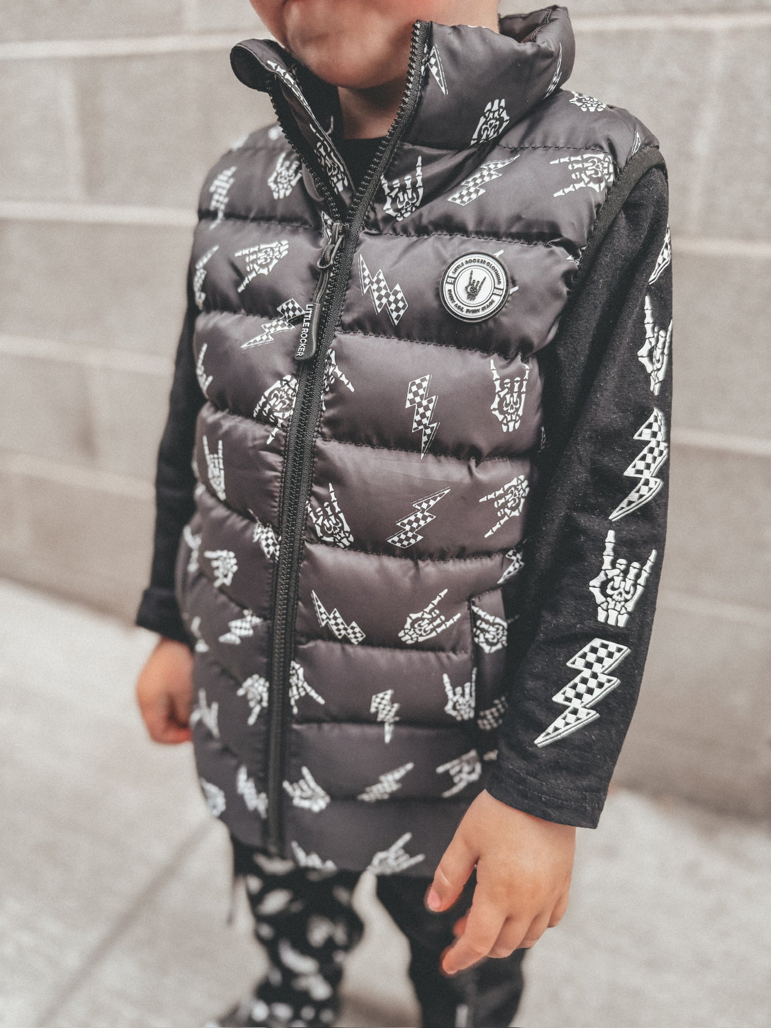 Bolted Bones Puffer Vest - 6-12M is backordered and will ship as soon as it is back in stock.