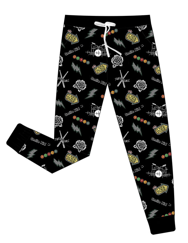 The Emo Nights Adult Joggers feature the same LRC-exclusive, sleeve-tattoo-inspired print — with real pockets, a comfy bamboo waistband, and drawstring for the perfect fit. Wear them to bed, to brunch, or to your next throwback show.