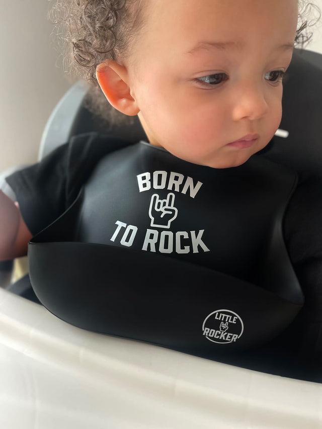 Introducing our "Born to Rock" Bib with Little Rocker Logo and Catch Pouch, the perfect accessory for mealtime mess management! Featuring a fun and stylish rocker logo, this bib not only keeps your little one looking cool but also keeps them clean with its convenient catch pouch. Made with durable materials, it's easy to clean and ensures mealtime stays fun and mess-free for both baby and parents alike.
