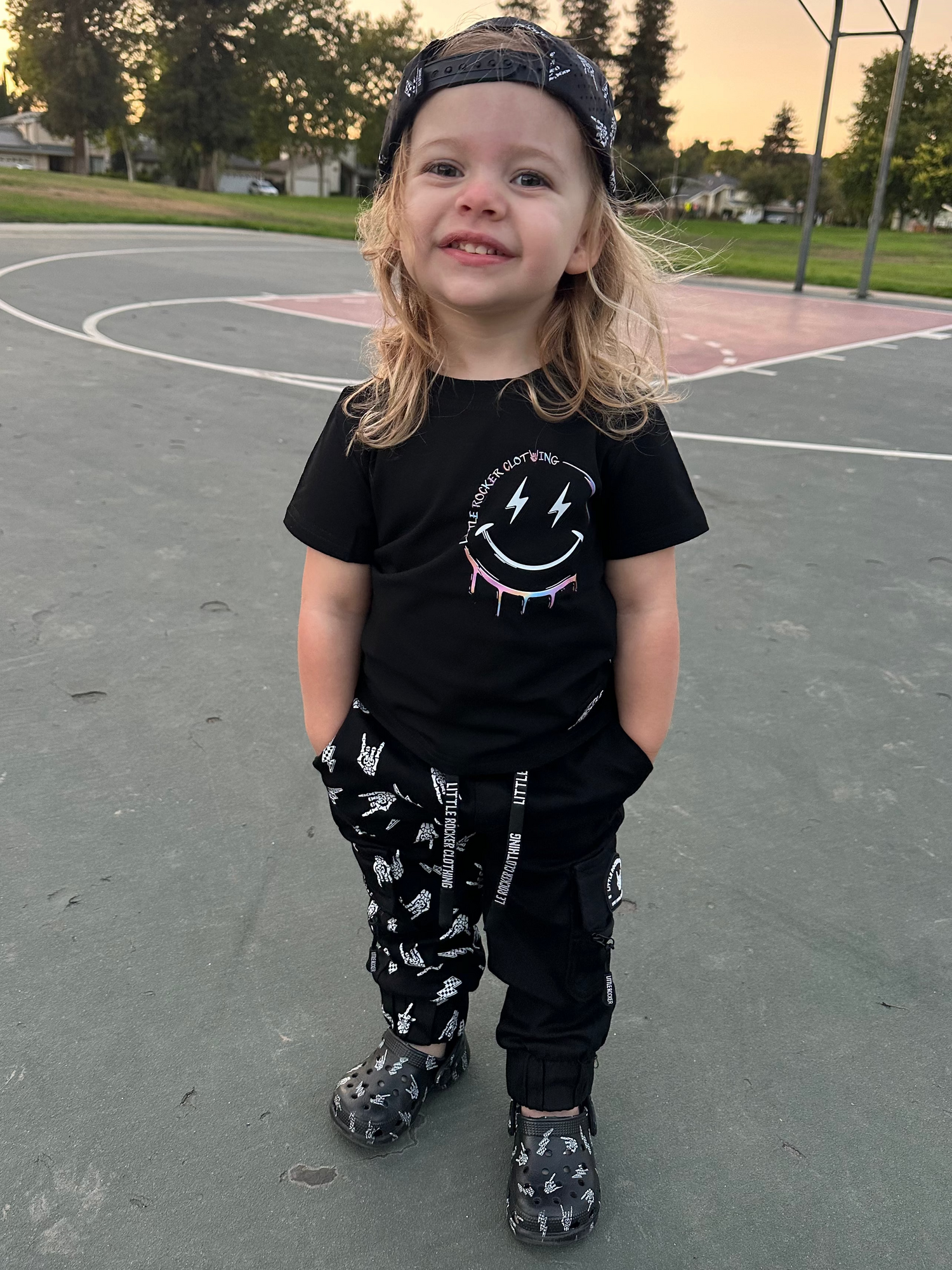 These Half Bolted Bones, Half Black Cargo Joggers are the perfect blend of edgy style and functionality. Featuring a custom LRC rubber patch on the left pocket and a sleek LRC zipper puller, these joggers are both unique and practical. The functional zipper adds an extra touch of convenience, making them as versatile as they are stylish. Available in sizes 6-12M to 10/12Y, these joggers are a must-have addition to any wardrobe. You won't want to miss out on these!