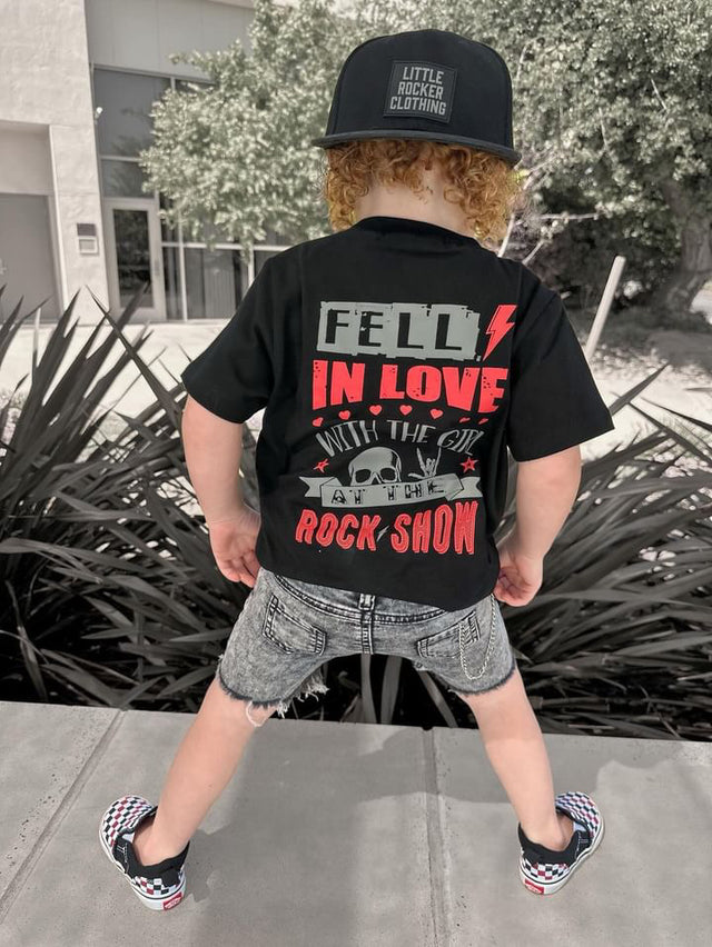 Introducing our "Fell In Love" Shirt, a tribute to the electrifying energy of live music and the magic of a rock show. Featuring the iconic words "Fell in love with the girl at the rock show," this shirt captures the essence of passion and excitement.