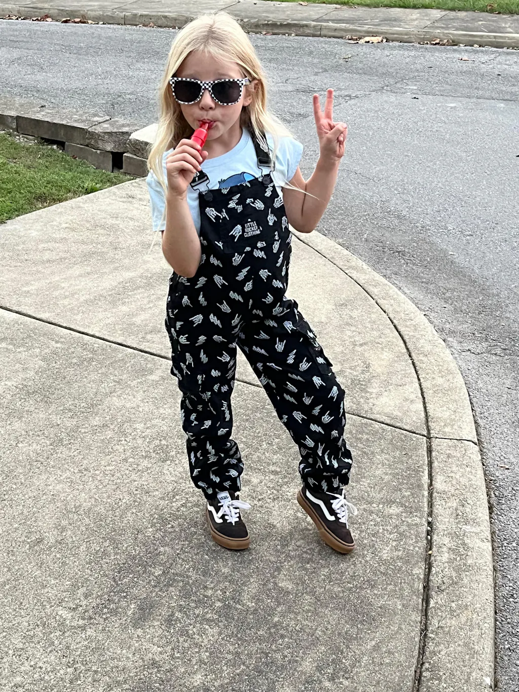 Meet your new favorite fit. The Pitstop Overalls – Bolted Bones are packed with attitude and built for everyday chaos. Featuring our iconic Bolted Bones pattern and custom LRC details, these overalls are designed to turn heads and take names.
