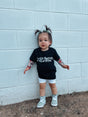 Introducing the Three Cheers tee from Little Rocker Clothing! Featuring the brand name in the iconic font inspired by My Chemical Romance, this shirt is perfect for little rockstars ready to channel their inner emo punk. Bold, edgy, and full of attitude, it's a must-have for your little rebel's wardrobe!
